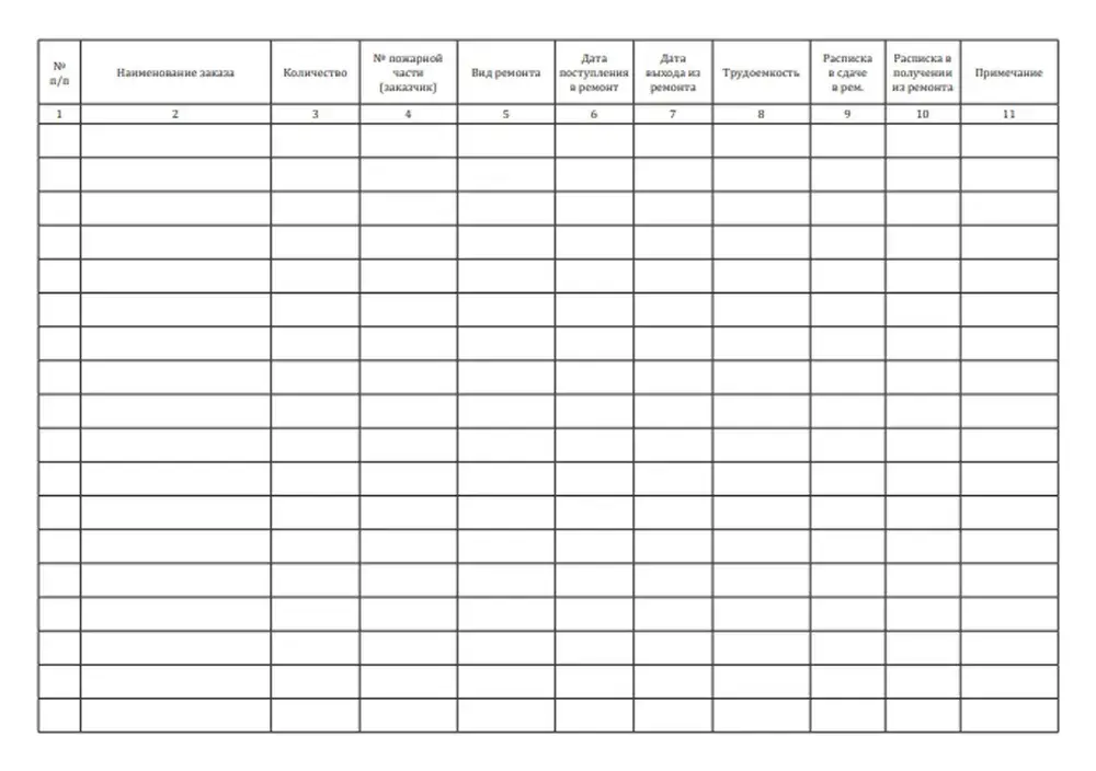 Форма книги соответствует Приложению 29 к Приказу МВД России от 24.01.1996 N 34 &"Об утверждении Наставления по технической службе государственной противопожарной службы МВД России&"