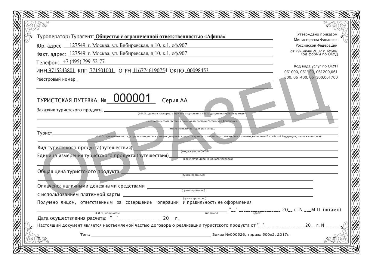 Путевка является бланком строгой отчетности (БСО), так как подтверждает оплату туристических услуг и приравнивается к кассовому чеку. Она должна содержать реквизиты, такие как данные туроператора, туриста, условия поездки, а также информацию о ценах и суммах оплаты. Фирмы, выпускающие БСО, обязаны вести строгий учет их серий и номеров