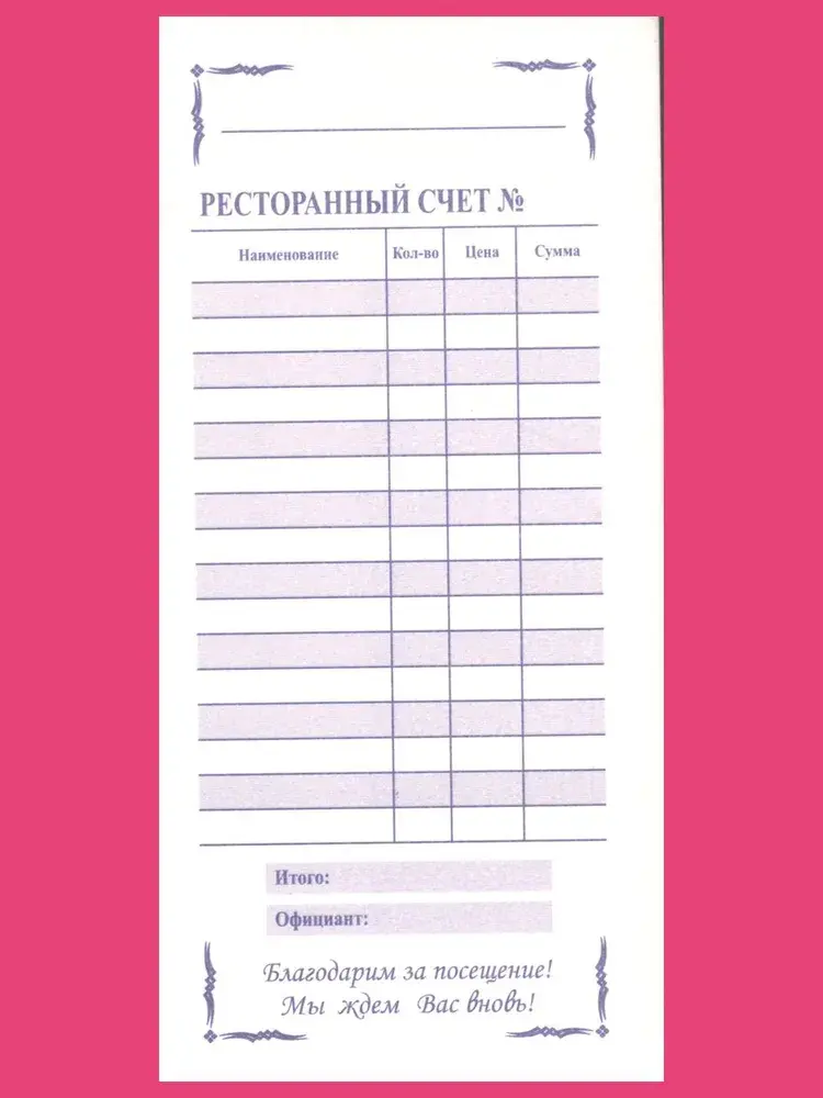 Покупая самокопирующийся бланк, вы получаете надежное решение для своего бизнеса, которое улучшит обслуживание клиентов и сделает ведение документации более эффективным. Бланк подходит не только для ресторанов, но и для других заведений, оказывающих услуги, где необходимо документировать финансовые операции.