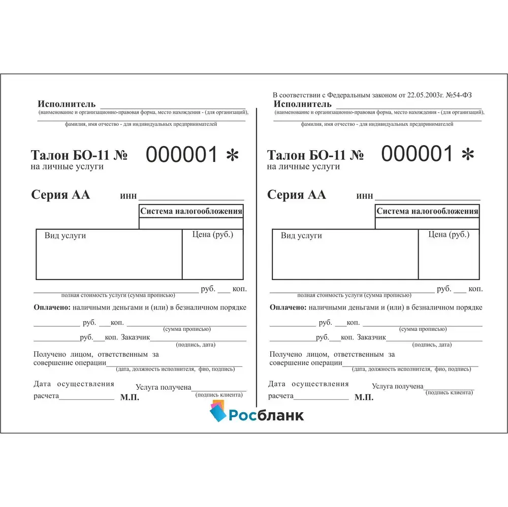 Талон БО-11 применяется также для всех видов бытовых услуг, где используется форма БО-9 при отсутствии контрольно-кассовой машины.